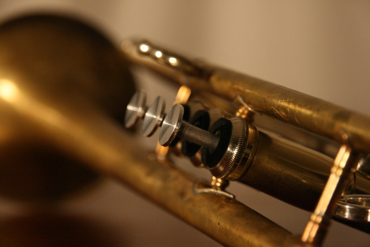 This trumpet started out as a Bach 37 Strad. Mods include interchangable screw-on bells, Piltzuk leadpipe, reversed main tuning slide, custom bracing, and trim kit. Bells are interchangable, any desired bell flare can be fitted.